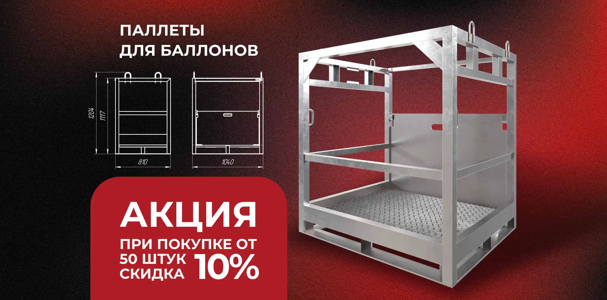 С 11 мая 2025 года стартует выгодное предложение для оптовых покупателей: при заказе от 50 неоцинкованных паллет для газовых баллонов предоставляется скидка 10%.