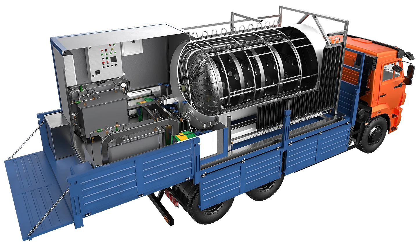 Как правило, азотно-газонаполнительные установки монтируются на бортовых КАМАЗах, либо на базе 3-х или 4-х осных полуприцепов. При технической возможности можем смонтировать оборудование на шасси заказчика, либо приобрести грузовик/полуприцеп у наших поставщиков.