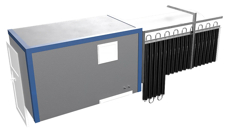 Второй атмосферный испаритель, так же, как и первый, монтируется на раме металлического каркаса установки. При необходимости испарители можно заменить или отремонтировать.