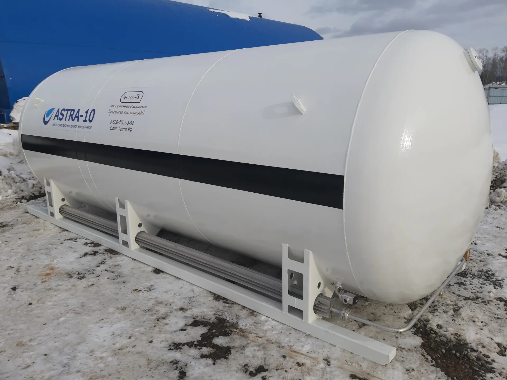 По запросу клиента возможна поставка ASTRA-10 в вертикальном исполнении, что особенно актуально при дефиците свободного места для установки изделия. Кроме того, при вертикальном исполнении у цистерны будет небольшое зеркало испарения. Оно напрямую влияет на скорость испарения криогенного продукта в резервуаре — чем меньше площадь поверхности зеркала, тем медленнее происходит естественный процесс испарения.