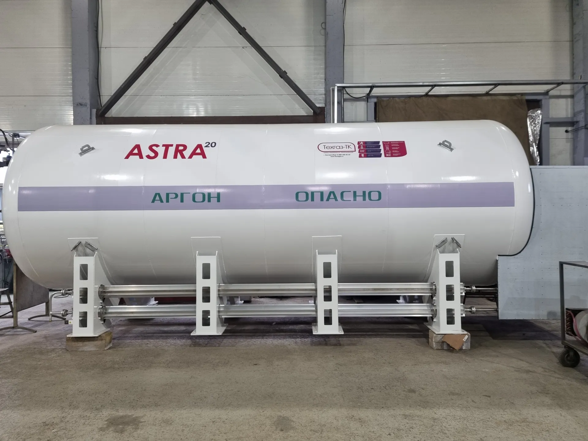 Криогенная цистерна ASTRA представляет собой сосуд из нержавеющей стали с вакуумно-перлитной или экранно-вакуумной изоляцией, помещенный в кожух из легированной стали. Конструкция ЦТК-20 включает опорные элементы, фиксирующие стяжки, волнорезы, трубопроводные системы, запорно-предохранительную арматуру, контрольно-измерительные приборы и специальный арматурный шкаф.