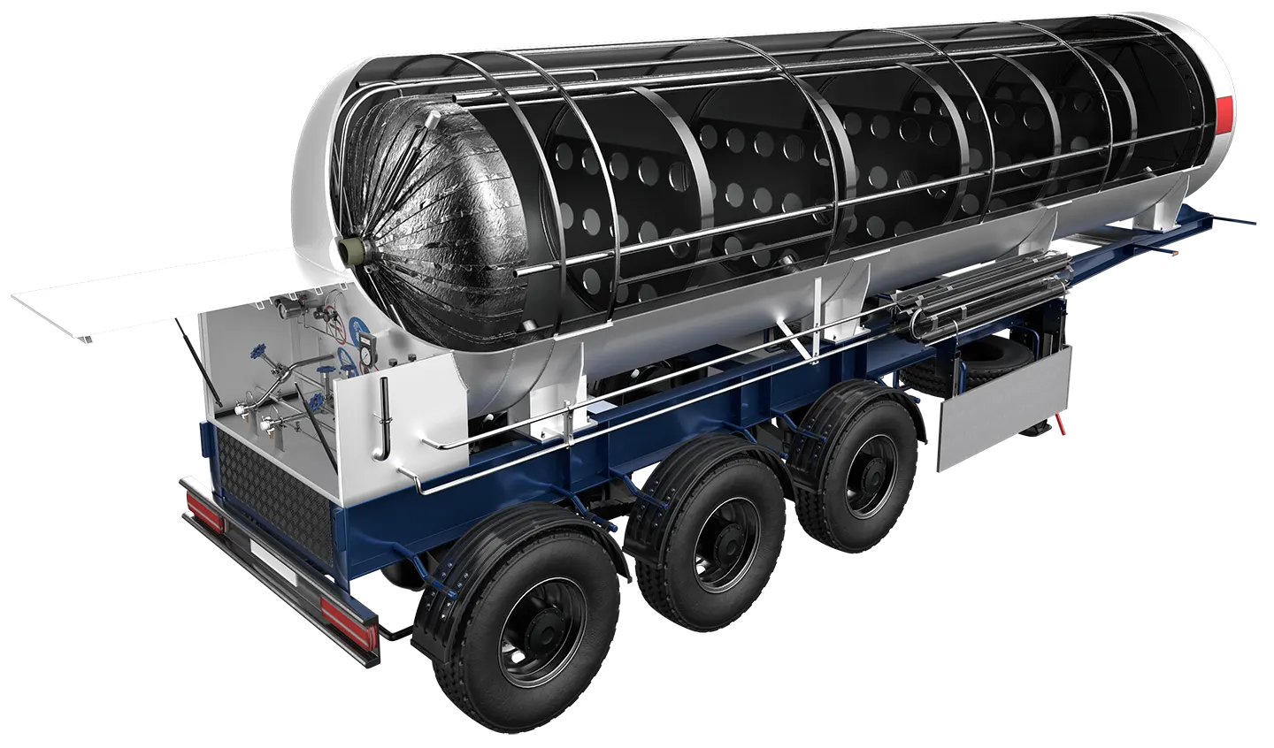 Криогенная цистерна ASTRA LNG представляет собой сосуд из нержавеющей стали с экранно-вакуумной изоляцией в кожухе из нержавеющей стали. Изделие оборудовано опорами, стяжками, волнорезами, трубопроводами, запорной и предохранительной арматурой, контрольно-измерительными приборами, а также арматурным шкафом. Резервуар в сборе с полуприцепом представляют единую конструкцию — криогенную полуприцеп-цистерну.