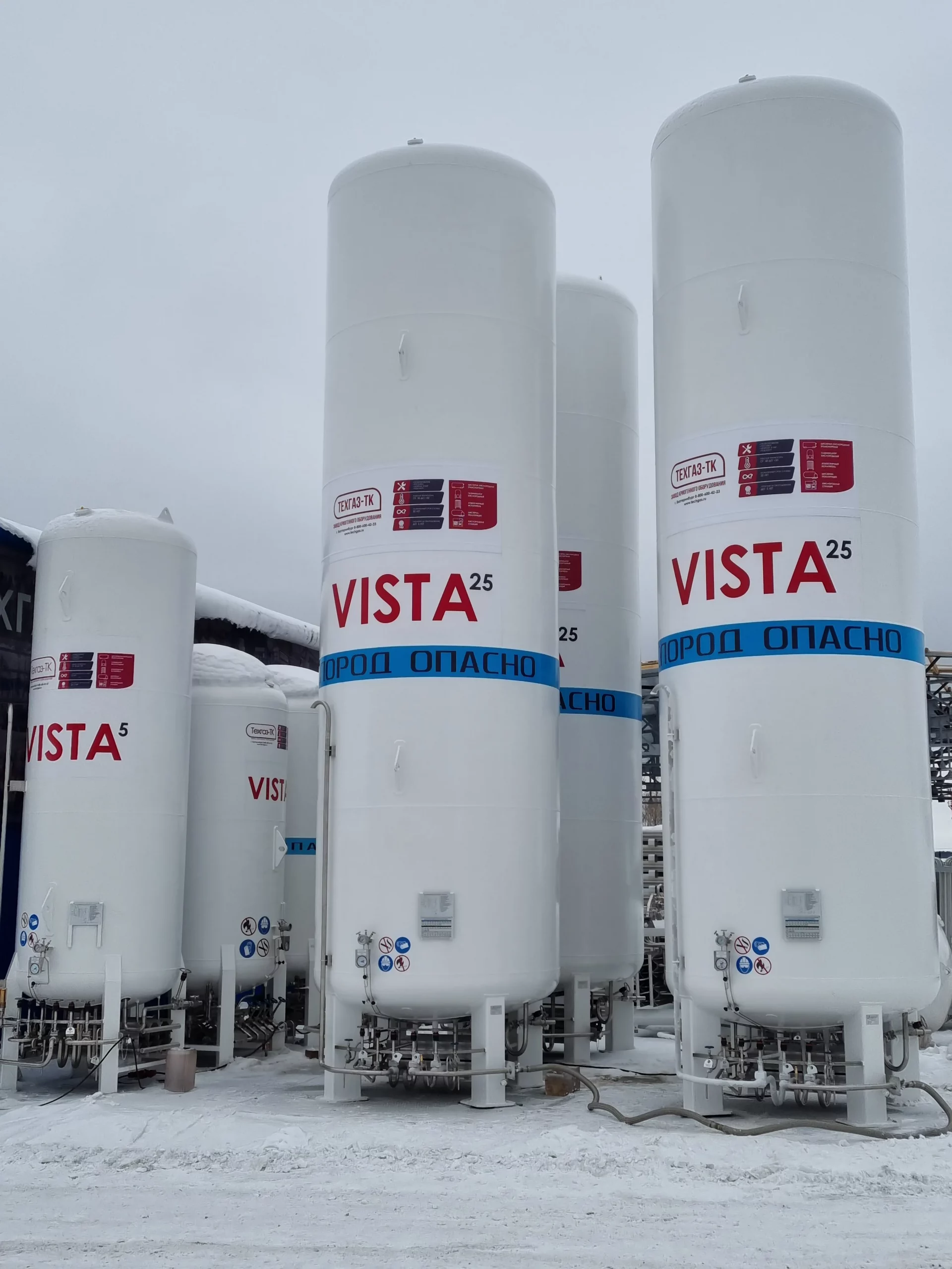 Криогенные газификаторы VISTA изготавливаются в климатическом исполнении УХЛ1. Это, согласно ГОСТ 15150-69, позволяет им работать при температурах окружающего воздуха в диапазоне -60...+40 °С. Исполнение УХЛ1 предусматривает эксплуатацию на открытом воздухе с воздействием любых атмосферных факторов: дождь, ливень, снег, пыль при сильном ветре.