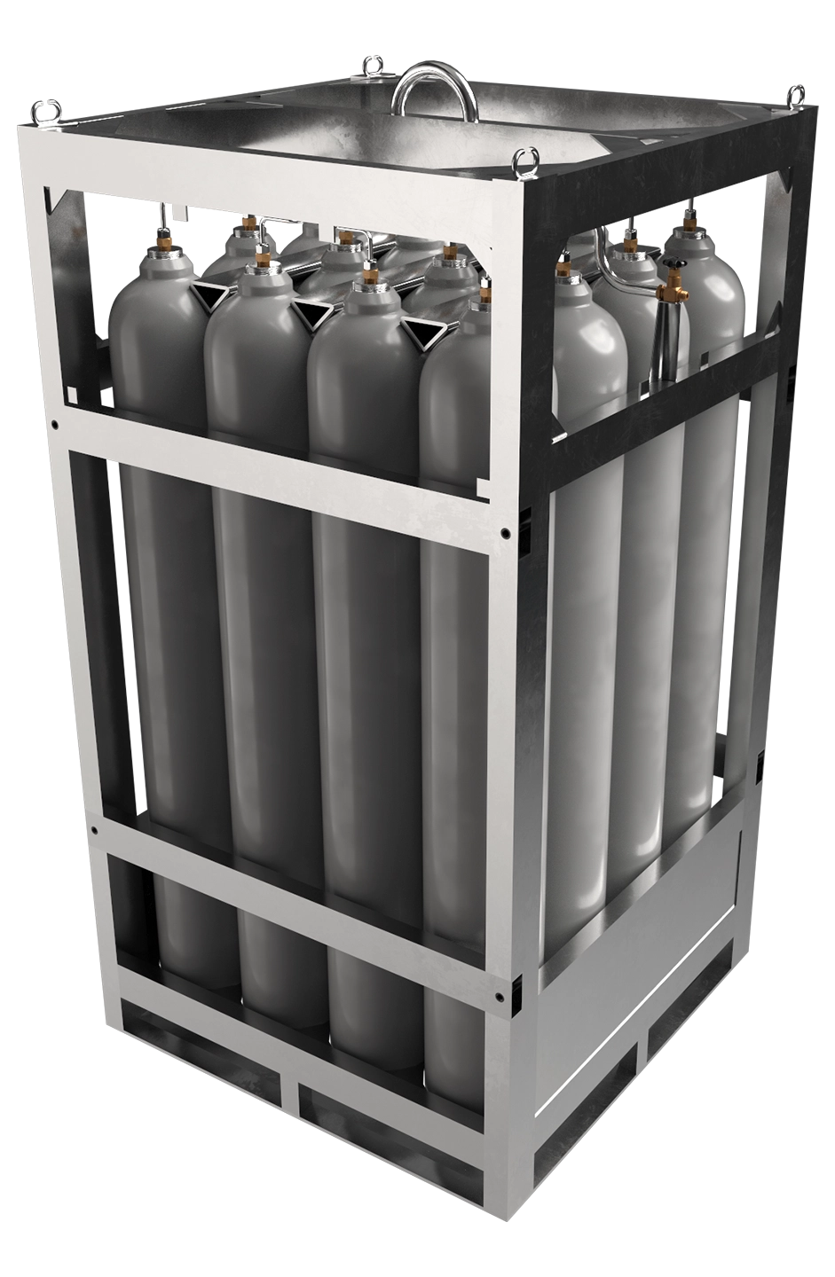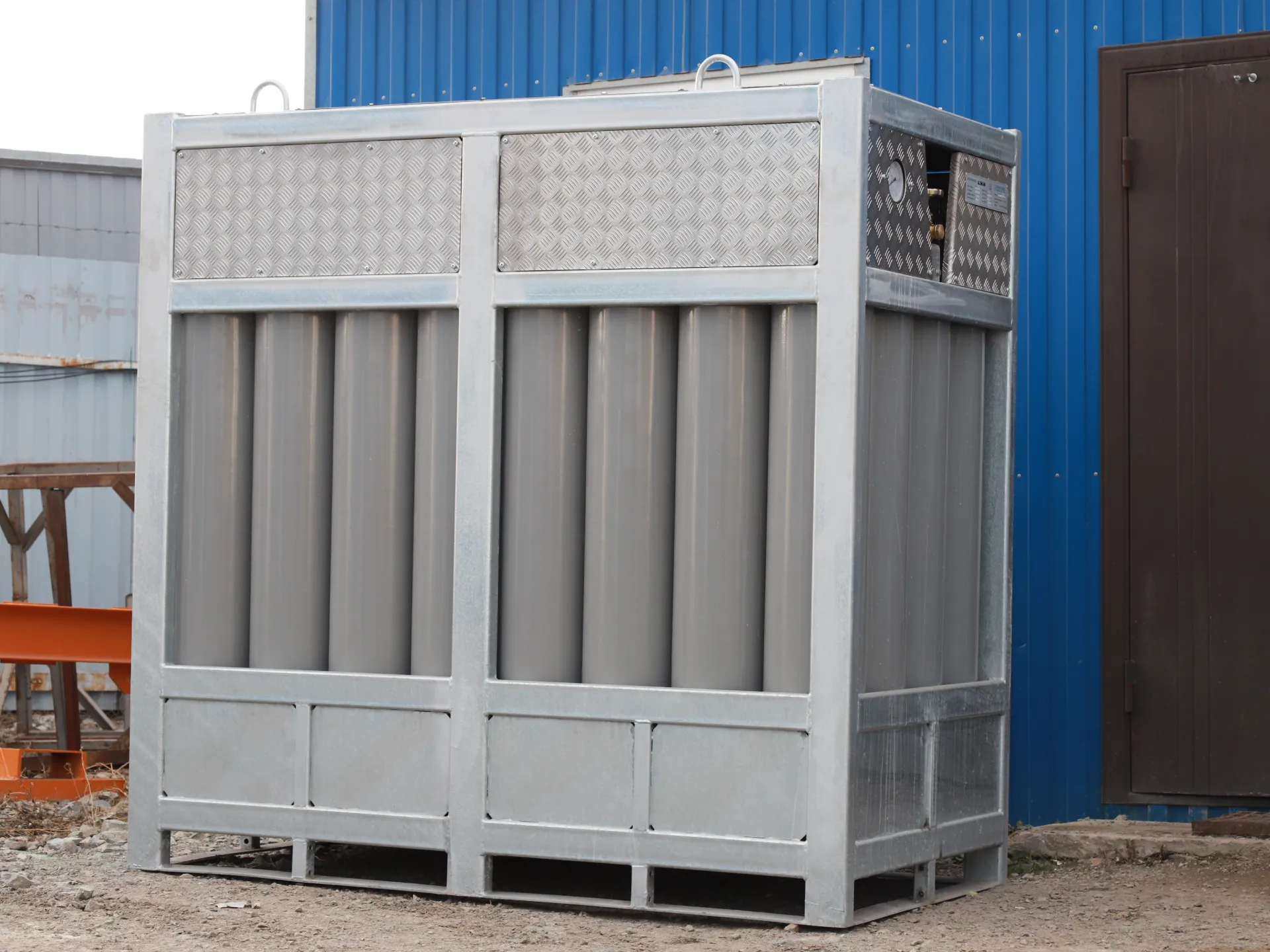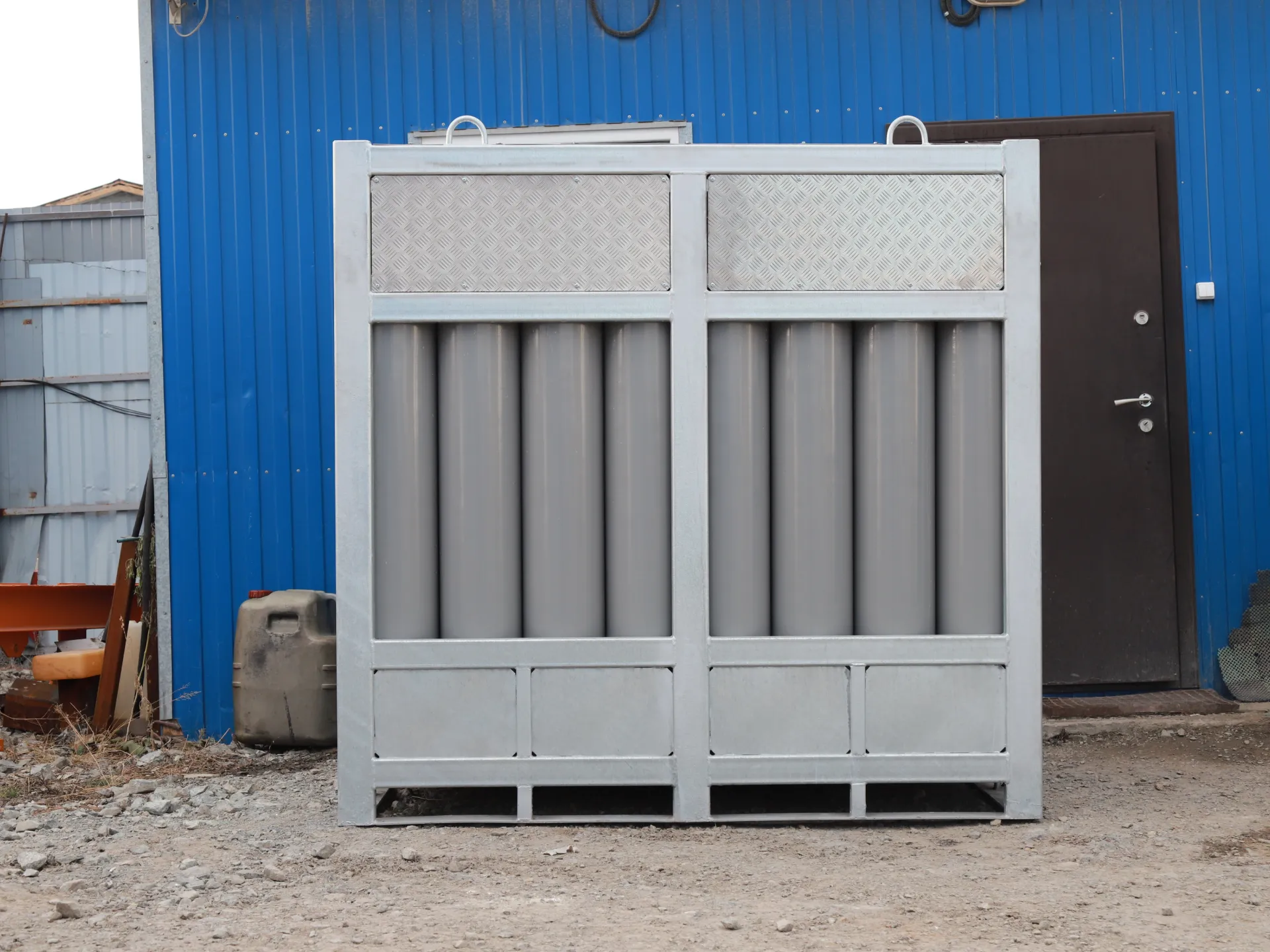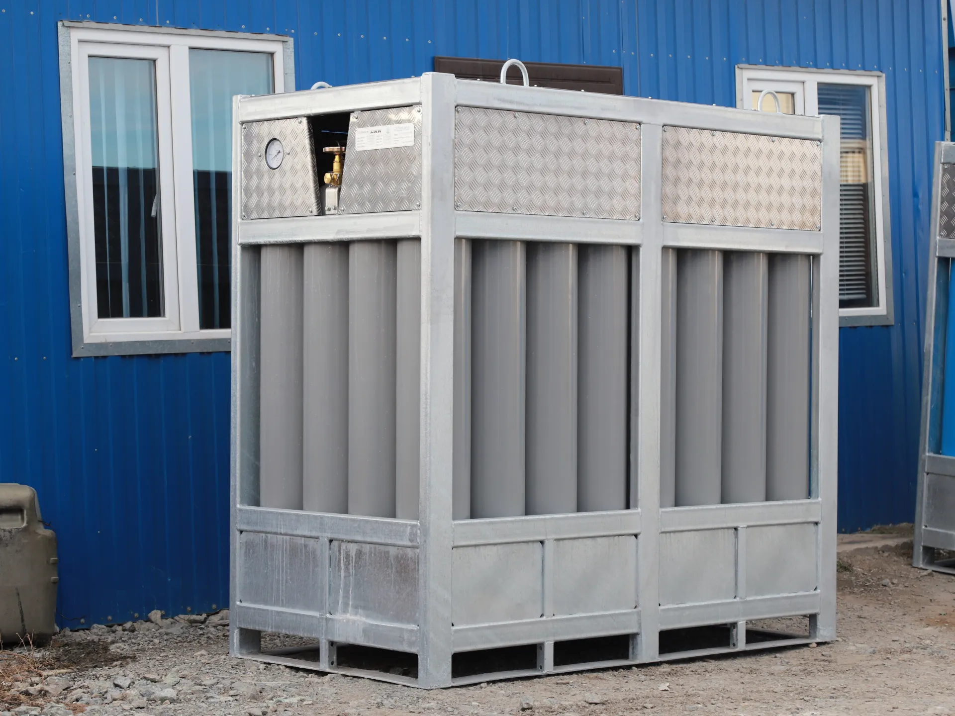 Аргоновый моноблок представляет собой стальной сварной оцинкованный каркас, внутри которого находятся баллоны, объединенные единым коллектором с одним или двумя общими вентилями. Для изготовления каркаса используется качественный стальной металлопрокат с прочным цинковым покрытием, что гарантирует нашей продукции надежную защиту от коррозии и долгий срок эксплуатации.