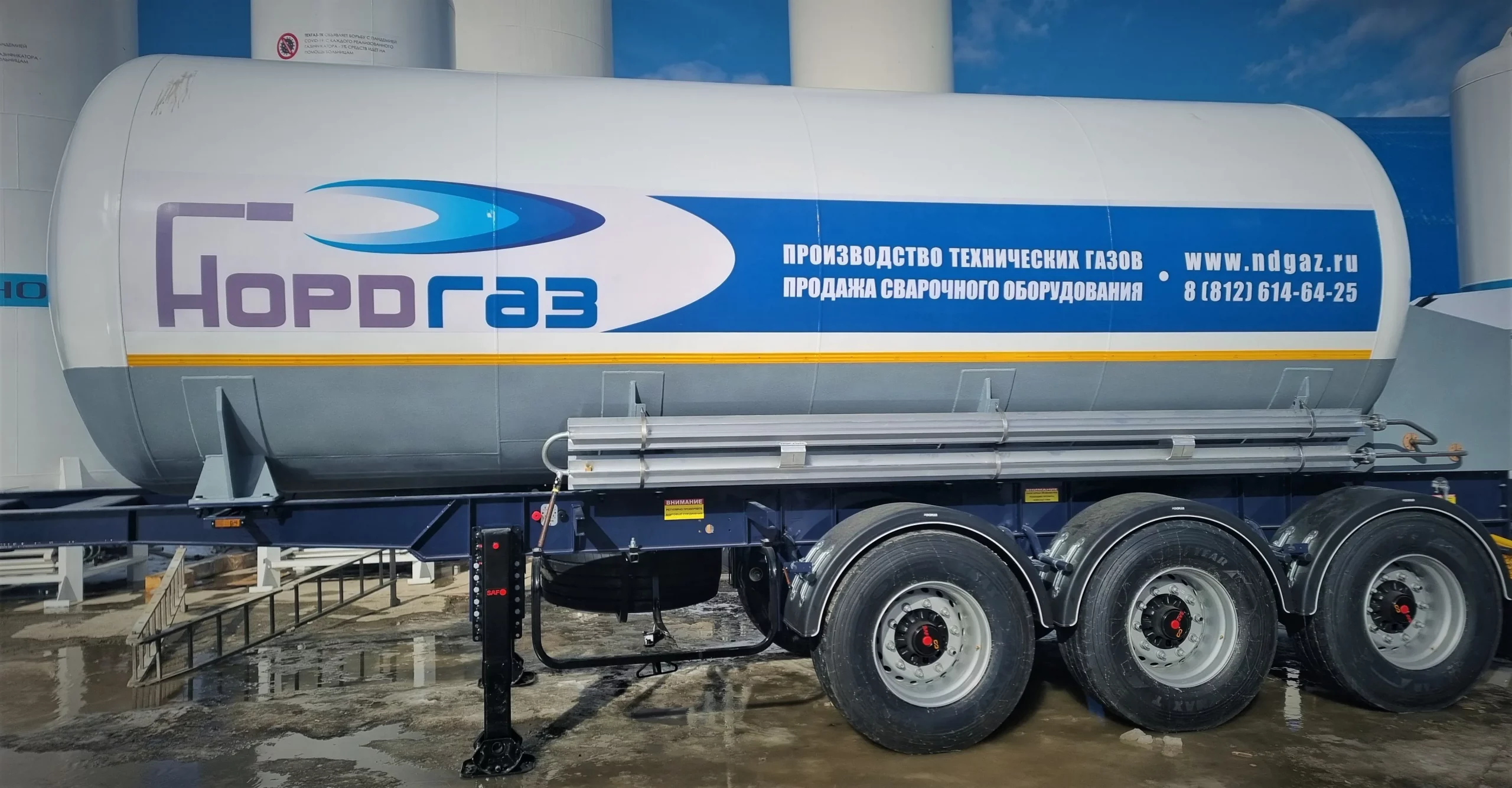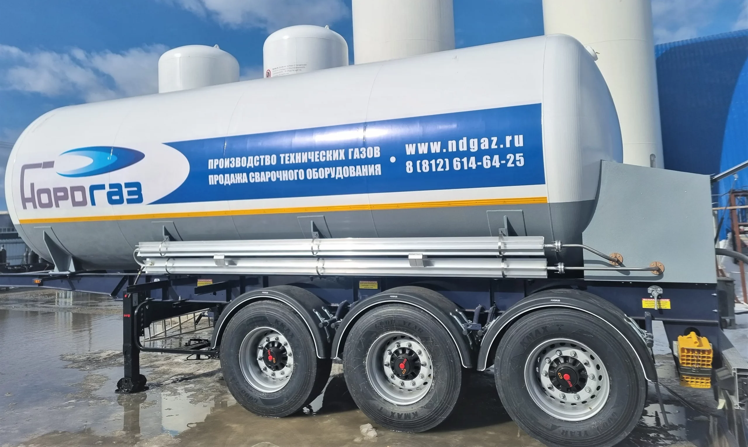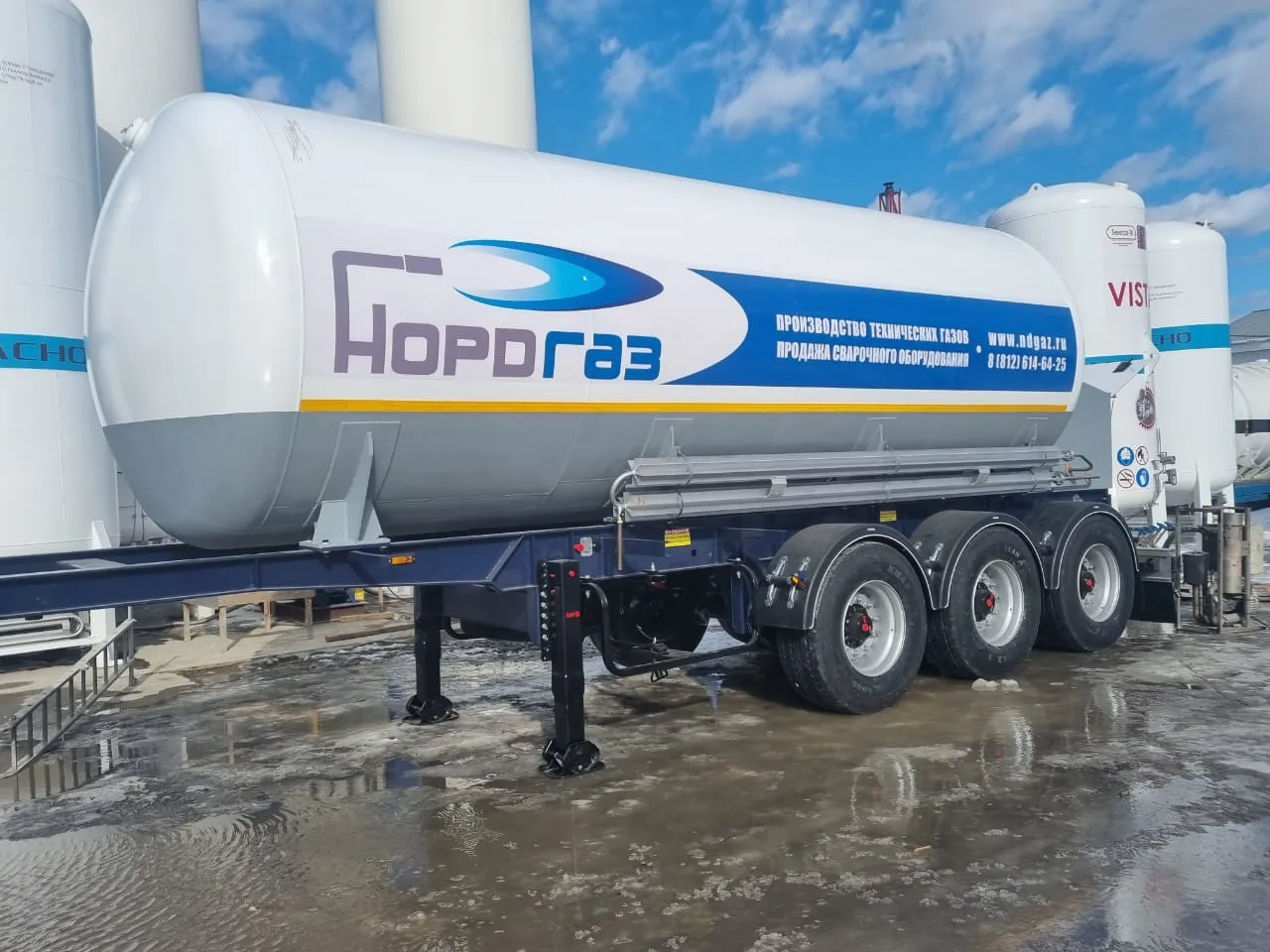 Кроме того, предусмотрена возможность, при которой заказчик предоставляет собственный полуприцеп, грузоподъемность которого должна соответствовать полному весу цистерны, заправленной жидким криопродуктом. При этом полуприцеп заказчика должен быть оснащён системой ABS и всесезонными шинами с маркировкой M+S.