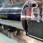 Пространство между наружным кожухом и внутренним сосудом заполнено теплоизоляционным материалом — двухкомпонентным пенополиуретаном с закрытой ячейкой. Также изделие оборудовано запорно-предохранительной арматурой, контрольно-измерительными приборами и седловыми опорами.