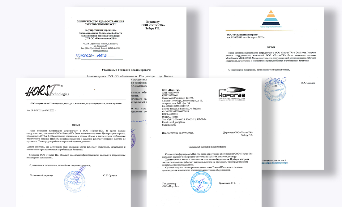 ООО «Техгаз-ТК» уже много лет успешно работает на рынке криогенного оборудования, и для нас важно знать, что наши клиенты остаются довольны нашей продукцией и услугами.