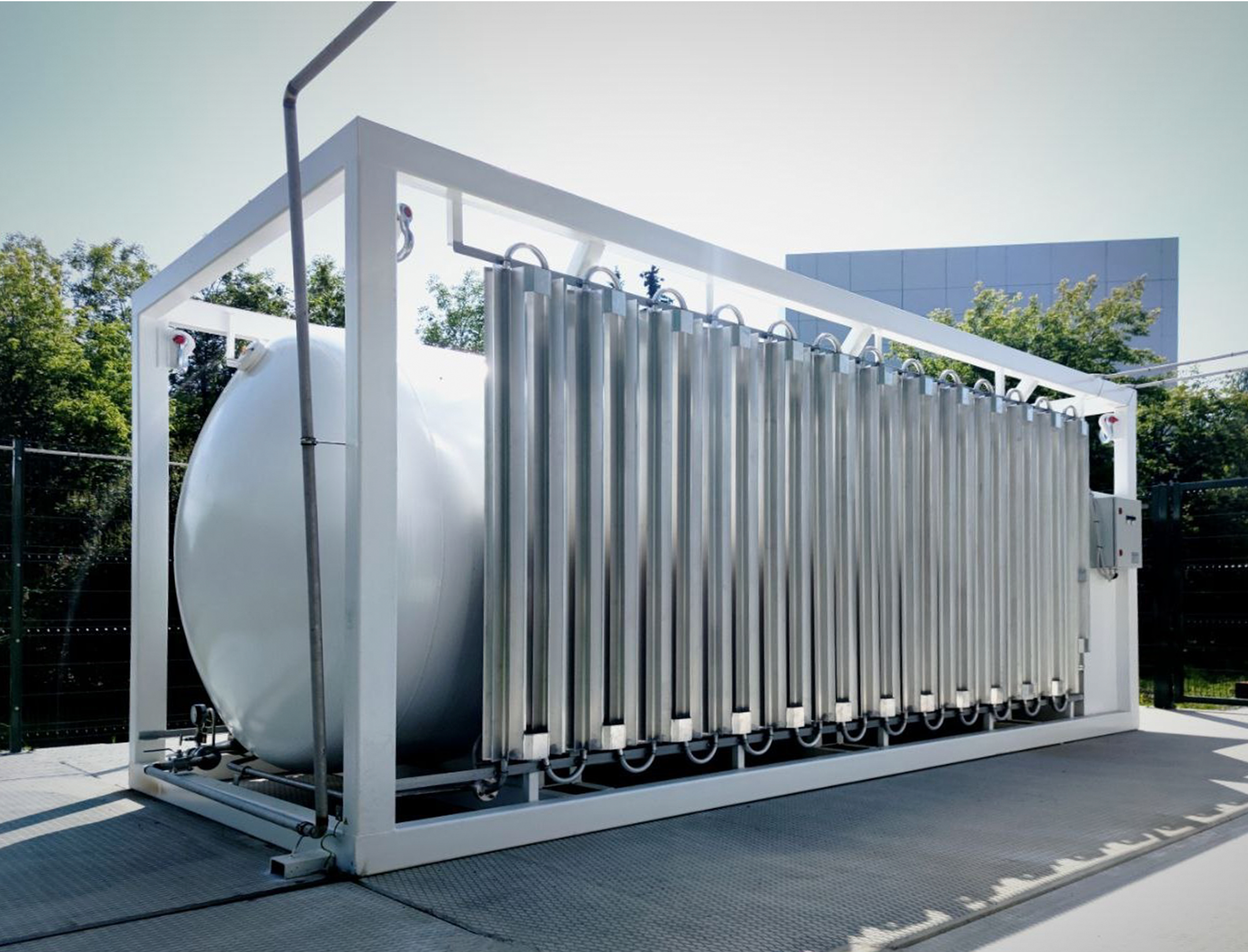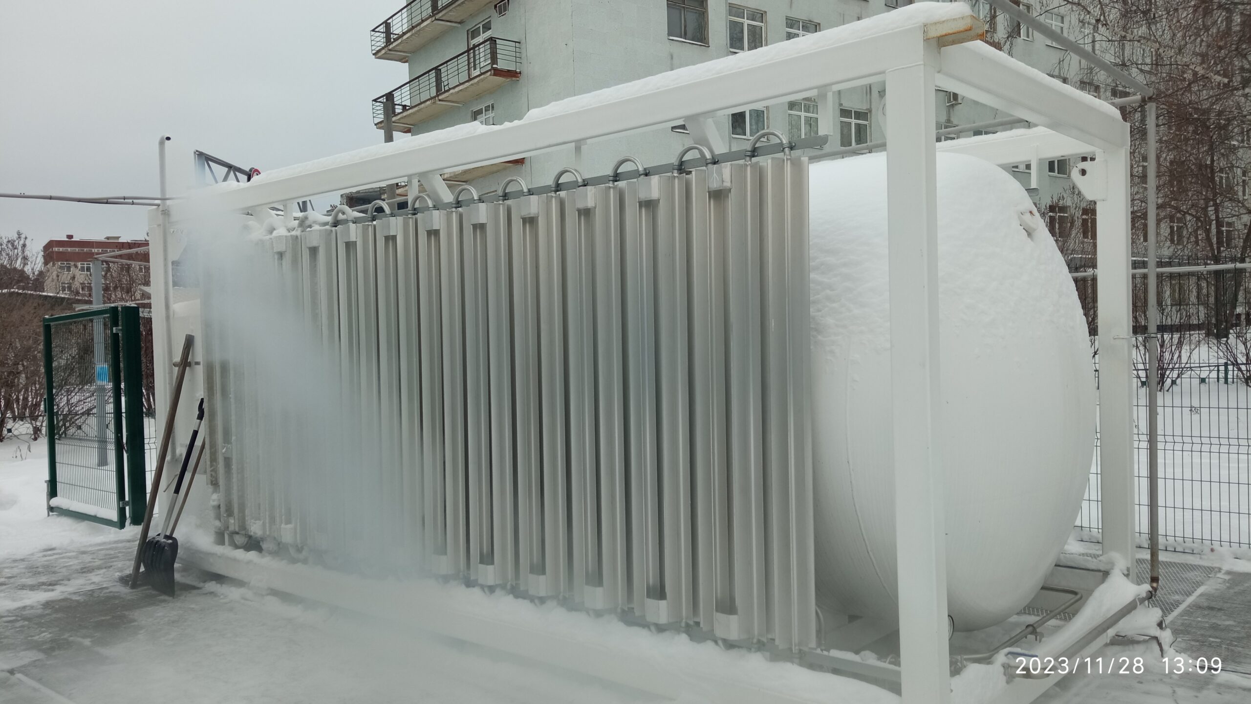 Каждый из газификаторов размещены в силовой раме/каркасе, по периметру которых оборудованы продукционные атмосферные испаритель серии «Гелиос» производительностью 250 нм²/ч.