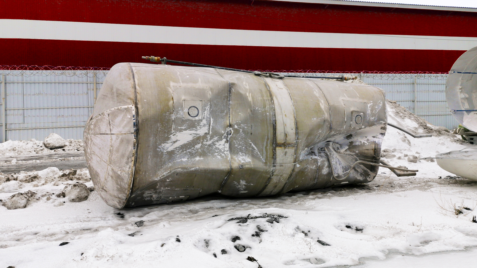 Последний кейс. При ремонте цистерны «мастера» нашего клиента решили проверить герметичность внешнего кожуха и начали накачивать в него азот. При этом сам внутренний сосуд остался пустым, без давления. В итоге огромную металлическую емкость попросту сплющило — стенки не выдержали нагрузки и сложились, как фантик. Восстановить такой сосуд уже невозможно, — пришлось изготавливать новый.