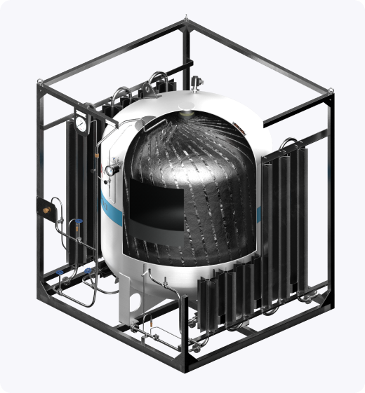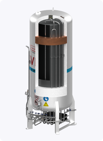 Пространство между двумя криогенными сосудами заполняется изоляционным слоем, который не пропускает тепло и способствует сохранению газа в сжиженном состоянии. Этот слой может быть одного из двух типов: